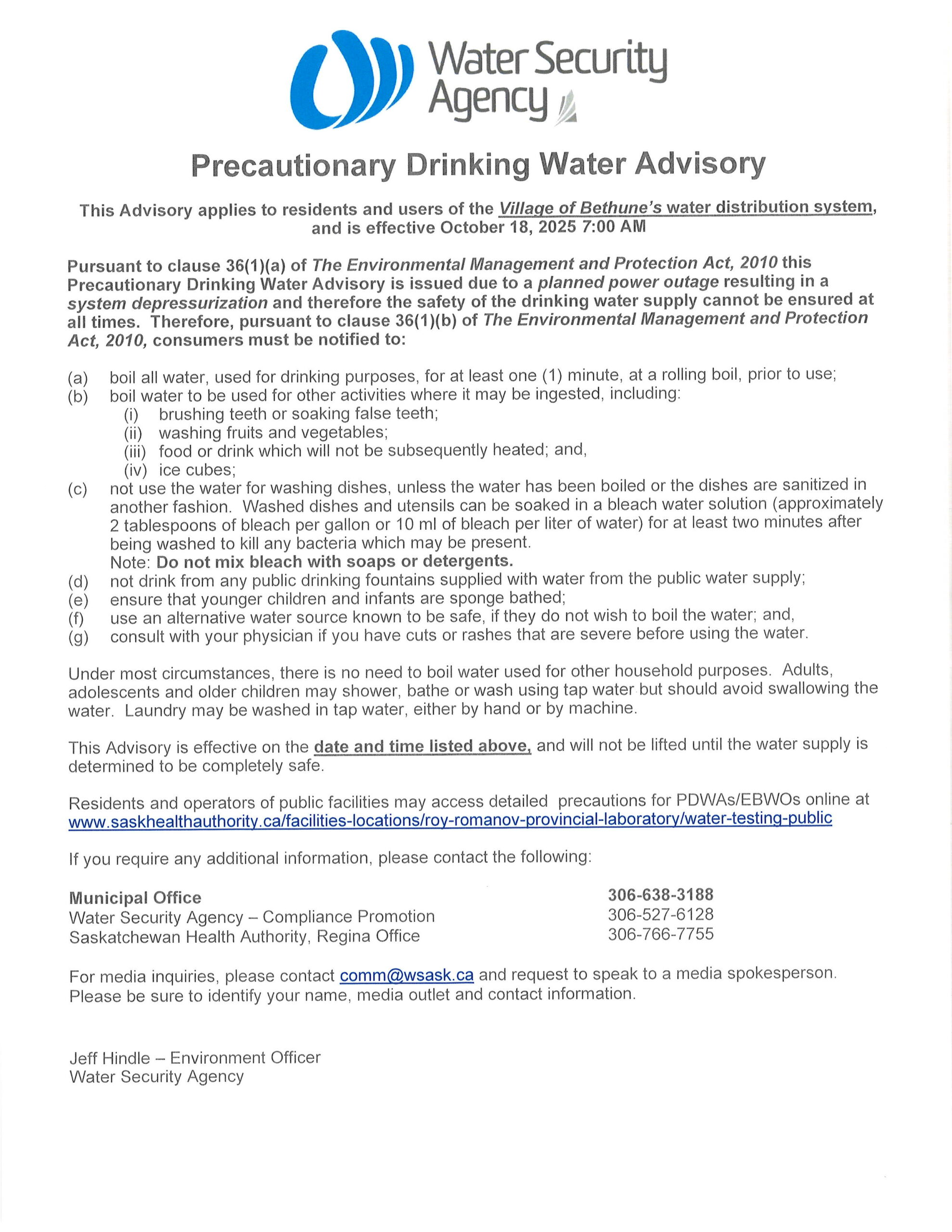 2. Contact the office by phone (306) 638 3188 or e-mail: villageofbethune@bethunesk.ca to find out the amount and/or request billing to be e-mailed.