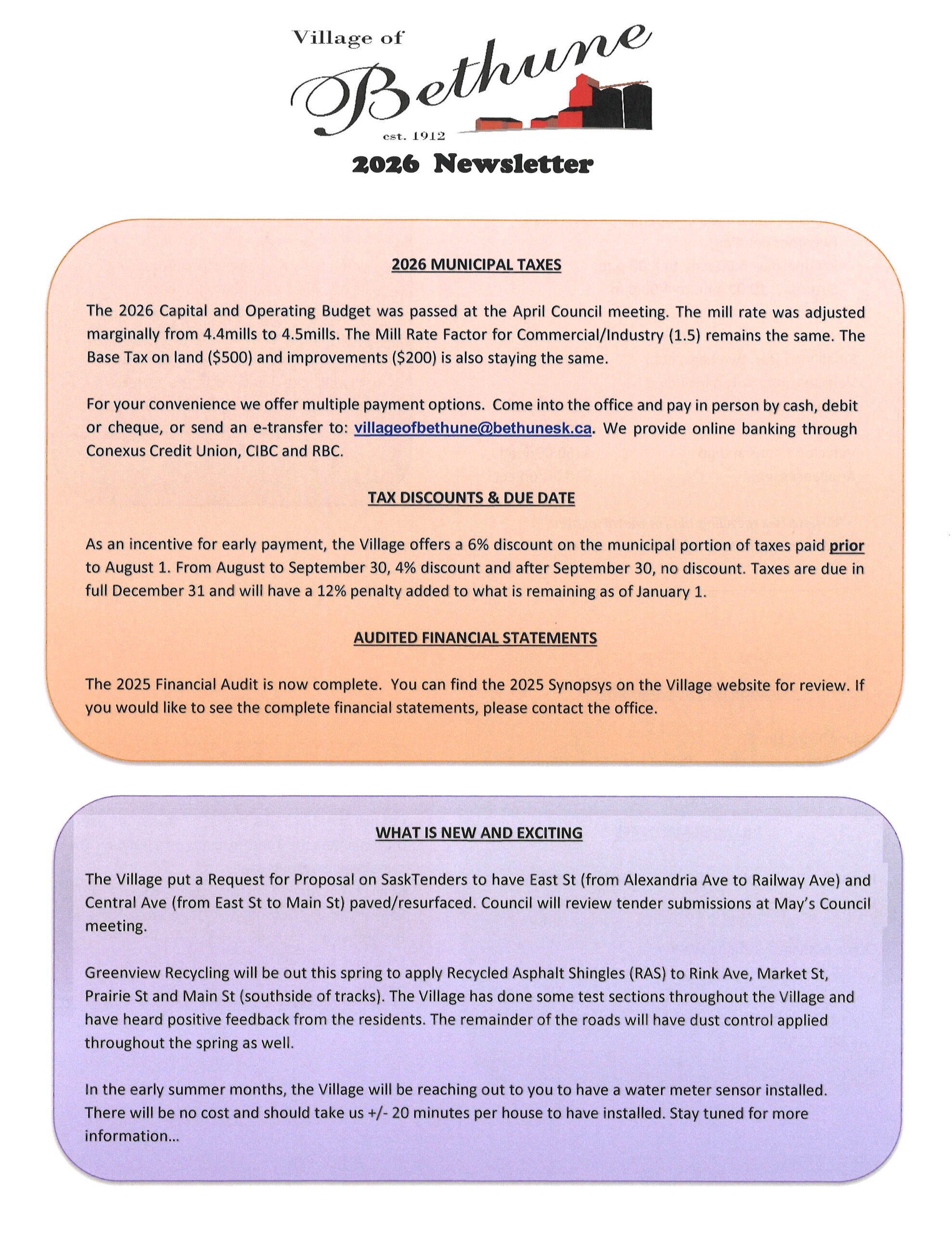 This website is intended to provide local residents, ratepayers and visitors to the site general information of events and matters pertaining to the Village of Bethune.